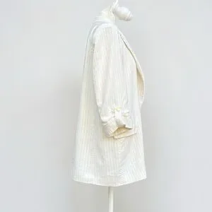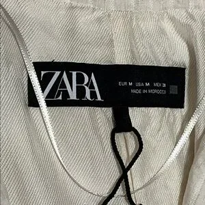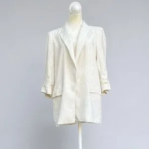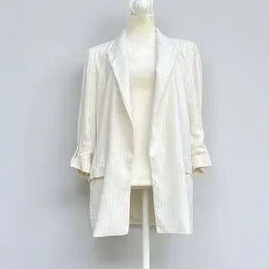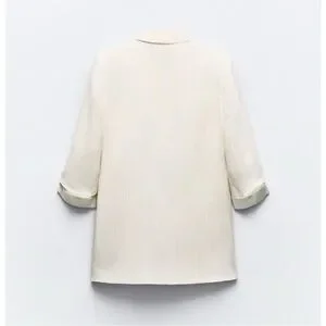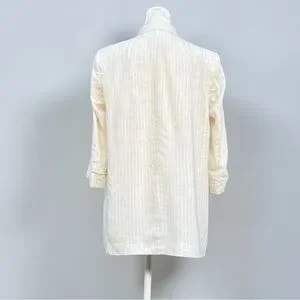 Zara Linen Blend Lightweight Open Front Blazer in Cream Pinstripe Sz Medium