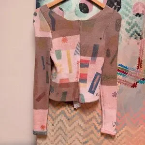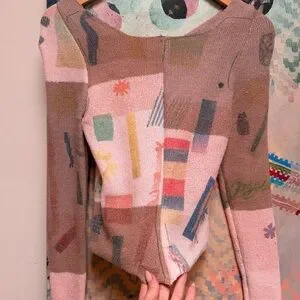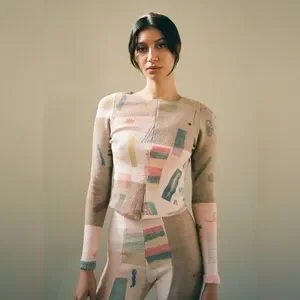 The Filati group utilizes new digital print technology on hand loomed fully fashioned knit pieces. Made from Italian yarn and printed with hand drawn whimsical illustrations the Filati top features an open back with crisscrossing straps. Center front and back seaming create a flattering fit on waist and bust. Made in the USA using custom-developed Italian yarn.