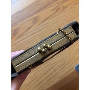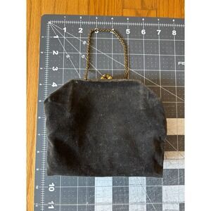 Vintage Black Velvet Evening Bag Gold Chain Kiss Lock Clutch Formal Handbag