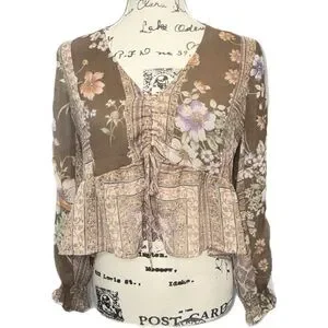 American Eagle - Boho Cottagecore Patchwork Floral Peplum Blouse - Size Small