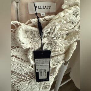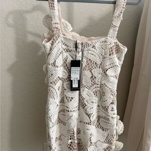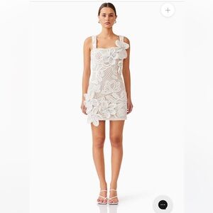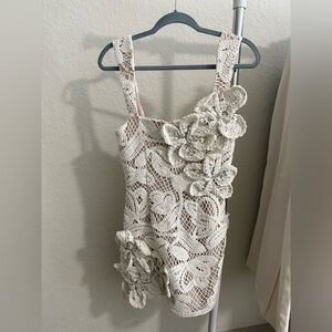 Elliatt White Crochet Mini Dress with 3D Floral Appliqués
