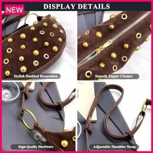 Style: Studded hobo crescent bag with zippered closure