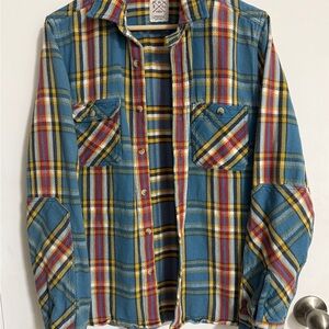 Levi's Blue Plaid Shirt with Yellow & Red Stripes