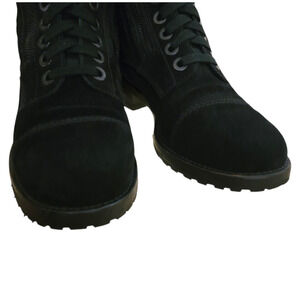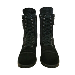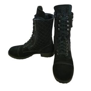 Chanel Quilted Suede CC Logo Combat Boots Black Moto Lace Up G29324 IT 37 6 6.5