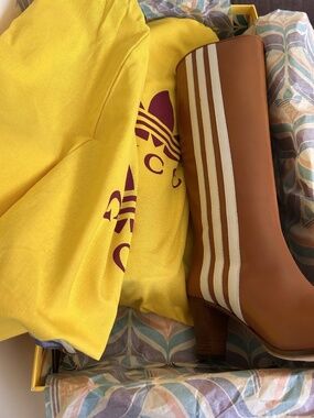GUCCI x Adidas Brown Leather 73Mm Knee High Stripe Boots Size 8.5(US) NIB 715584