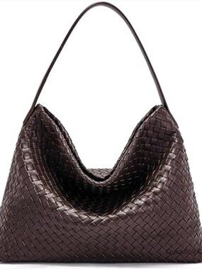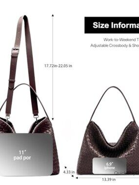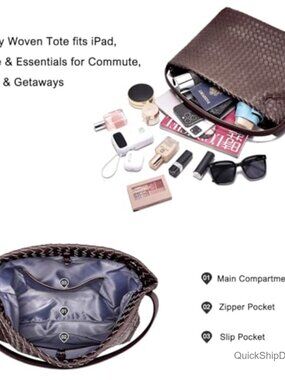Vegan Leather Woven Tote Bag with Adjustable Strap and Pockets