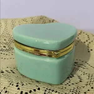 Heart Shaped Trinket Box in Tiffany blue with Gold Trim