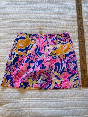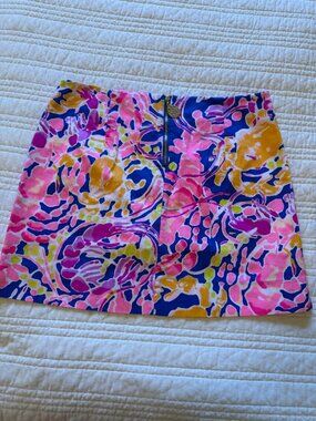 Lilly Pulitzer Marigold Brilliant Blue Catch Release Skort Gold Sz 8 Pocket Zip