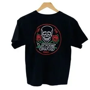 Vans Black Skull Tee Shirt, Small- EUC