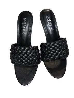NWOB Cape Robbin Black Woven Slide Sandals Women’s Open Toe Braided Mules size 8