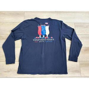 Vineyard Vines Long Sleeve Shirt Men’s XL Navy Red, White & Booze Patriotic Tee
