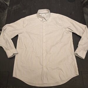 Charles Tyrwhitt Classic Fit Non-Iron Shirt 17/37 Blue Tan Check Button Down