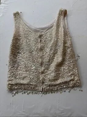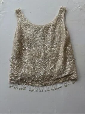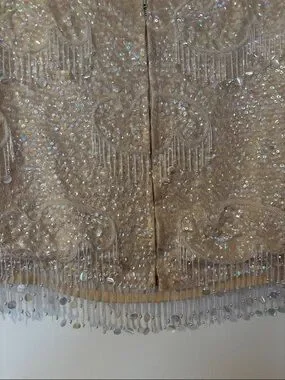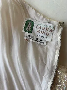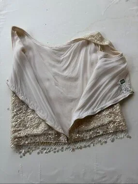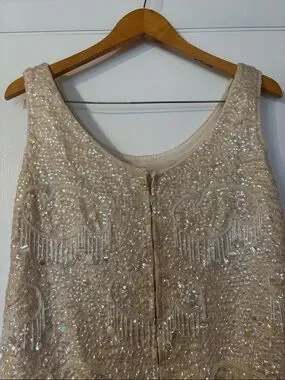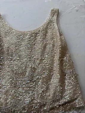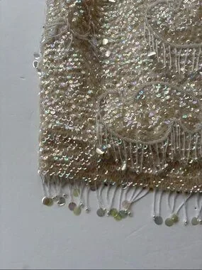 Vintage 60’s Beaded Sequins Cream Pastel Large Wool Embellished Bridal 50’ Large
