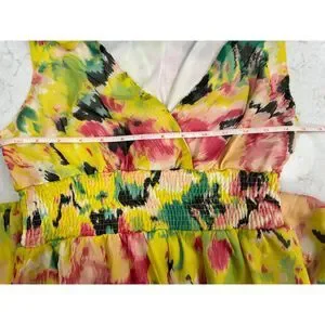 Bold, artistic, and effortlessly elegant — this Anthropologie Chaundry KC maxi dress is a standout piece designed to make an impression. Featuring a vibrant yellow base with multicolor abstract brushstroke print, this dress blends bohemian artistry with a flattering, wearable silhouette.