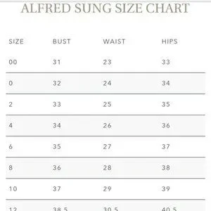 Brand new fully lined duchess satin dress with grosgrain ribbon waist band and high back with zipper. Please note that this dress has some very small imperfections from hanging in a bridal store. Due to the shiny nature of the fabric, shadows in the photos are unavoidable. This dress is all one colour!