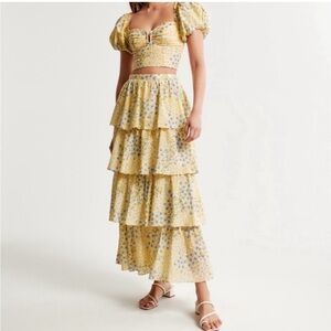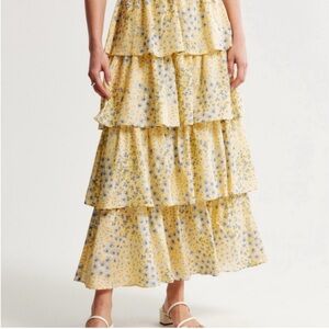 Abercrombie NWT Yellow Floral Tiered Maxi skirt women’s Small