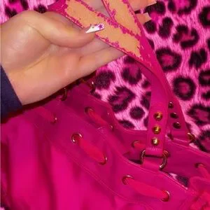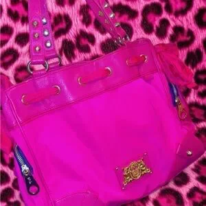 Iconic hot pink Juicy Daydreamer with gold hardware, studded straps, and that classic slouchy silhouette. This bag is SUCH a statement piece โ giving Paris Hilton, McBling, early 2000s energy ๐