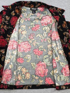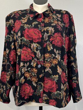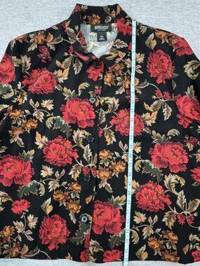 Briggs New York Jacket Women's Black Red Floral Button Up Long Sleeve Size 2X