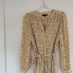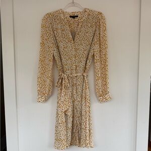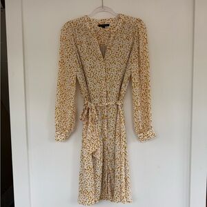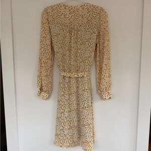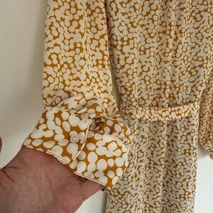 Banana Republic Long Sleeve Yellow and Cream Print Wrap Dress size M