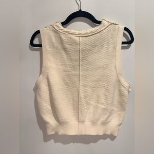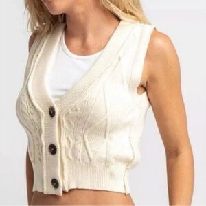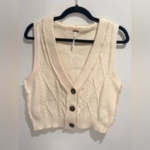 Free People Cable Knit Cropped Sweater Vest Cream Button Front Size L