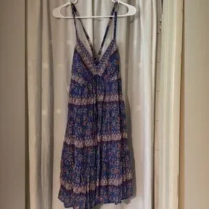 Mossimo Supply Co. Blue Floral V-Neck Mini Dress