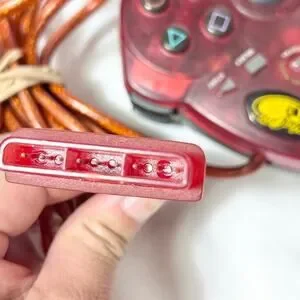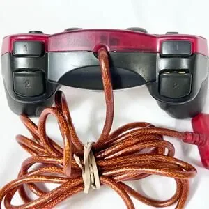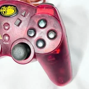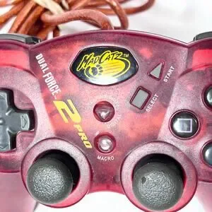 Introducing a Mad Catz PS2 Dual Force 2 Pro Turbo Controller in red for Playstation 2, wired and fully functional for gaming.