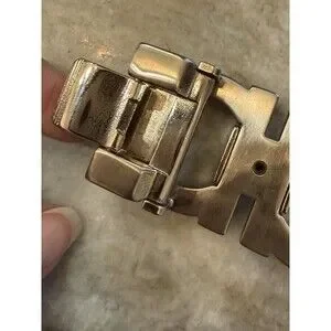 The Salvatore Ferragamo silver tone belt buckle is a stylish and classic accessory for men. Made in Italy, this single tongue buckle fits belts with a width of 1.38 inches. The buckle features a solid pattern with the brand's signature logo accents, adding a touch of sophistication to any outfit. Perfect for those looking to elevate their wardrobe with a high-quality and fashionable belt buckle.