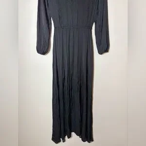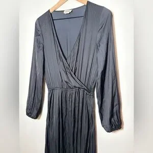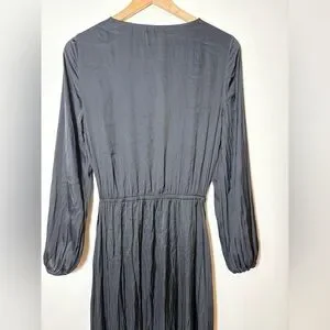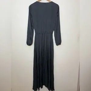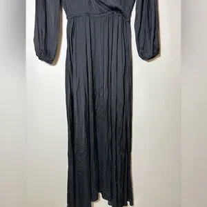 Zadig & Voltaire Black Long Wrap Maxi Evening Long Sleeve Satin Dress Size SM