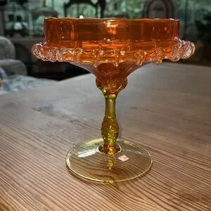 Italian Handblown Orange & Yellow Murano Glass Compote, Bowl or Candy Dish