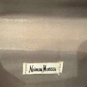 Nieman Marcus champagne silver chevron-quilted clutch with tassel accent. Sleek rectangular silhouette for essentials. Shiny finish adds a refined, timeless look.