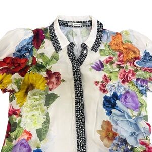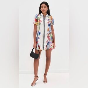 Alice + Olivia Claire Placed Floral Tiered Mini Shirtdress