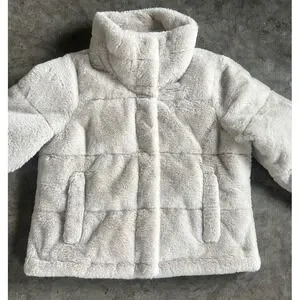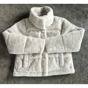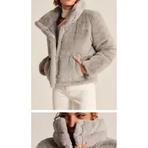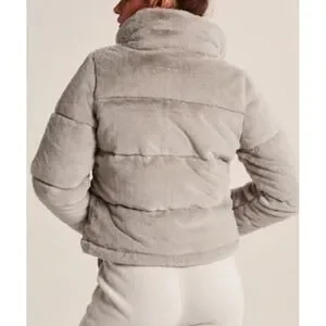The Abercrombi & Fitch Mini Puffer Jacket Beige Faux Fur Cropped Soft Large