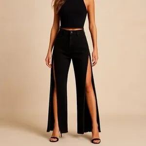 • High-waist statement denim with bold side slit design