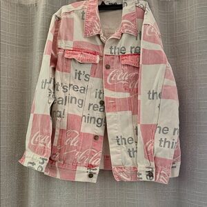 Rolla's Free People Coca-Cola Denim Jacket size small Metalic Silver