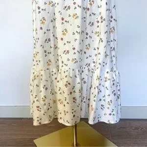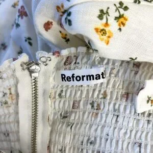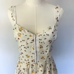 Reformation Dolci White Floral 100% Linen Midi Dress Sweetheart Neckline Size 6