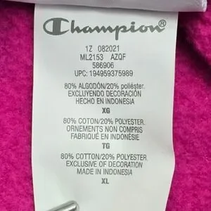 Champion hoodie in a vibrant pink and black tie-dye pattern. This fleece-lined sweatshirt features a classic drawstring hood, a front kangaroo pocket, and ribbed cuffs and hem for a comfortable fit. A unique white graphic is embroidered on the chest, incorporating the iconic Champion logo with a rose detail. The left sleeve is finished with the signature 'C' patch. Crafted from a soft cotton blend, this piece offers a bold, streetwear-inspired look.