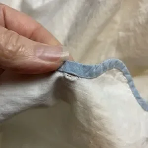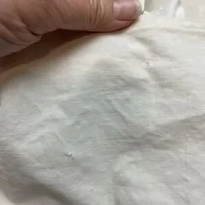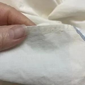 This coverlet is not without its imperfections, discolorations, repairs and broken stitching (pictured), but they're all minor in my opinion, given the age of this piece. I'm guessing maybe the 1940's. The bird appliques all look intact. This is the weight of a heavy sheet, and it is unfinished on one side, which made me decide it was a coverlet rather than a tablecloth. An exquisite, unique thing of beauty.