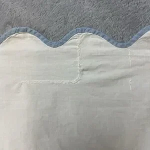 Vtg MCM Bird Applique Coverlet Sheet Full Double White Blue Cotton Scallop Hem
