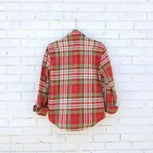Stylish plaid shirt featuring a classic red and green design. Perfect for casual outings or a smart-casual look. Very good condition. Women's size 10. Approximate flat lay measurements pit to pit 19.5 inches, Length 26 inches.