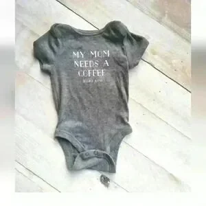 Jumping Beans My Mom Needs A Coffee Short Sleeve Romper Gray Size 6 Months