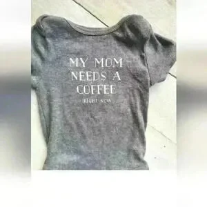Features snap button closure, my mom needs a coffee right now white graphics at front.