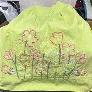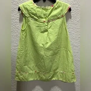Super sweet lime green dress with flower appliqués size 4T. Good condition for age but still looks very good! Appliqué pictured from the back as well.