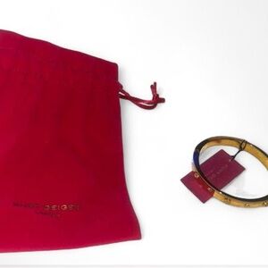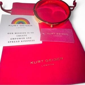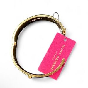 Kurt Geiger black enamel bangle with gold-tone accents. Sleek design with subtle stud details for everyday elegance. Adds a polished black and gold finish to any outfit.