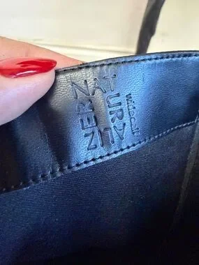 Naturalizer Black Leather Pointed-Toe Knee Boots with Mid Heels