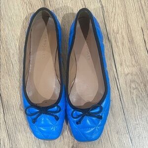Chic blue quilted flats with black trim. Comfortable and stylish for everyday wear. Preowned.