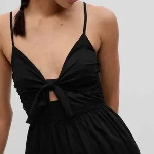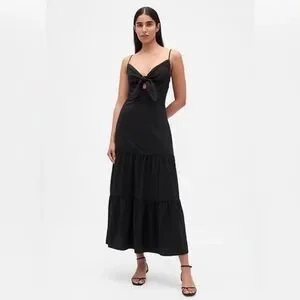 NWOT GAP Black Tie-Front Tiered Maxi Dress with Spaghetti Straps, Size XXL