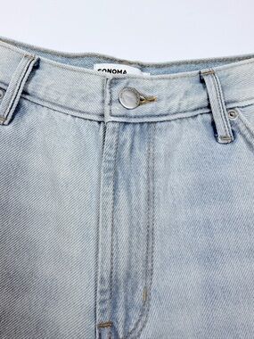 Denim, Jorts, Casual, Everyday, Classic, Minimalist, Distressed, Raw Hem, High-Waisted, Relaxed Fit, Summer Essentials, Weekend Wear, Basics, Neutral, Sonoma Goods for Life, Kohl's, Durable, NWOT, New Without Tags, Size 10, Medium Wash, Blue Jeans