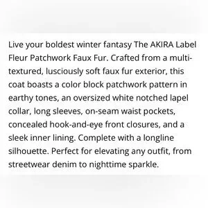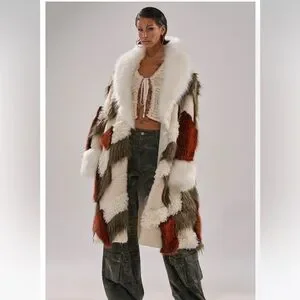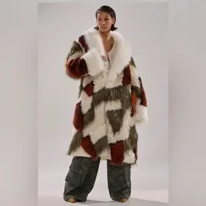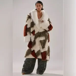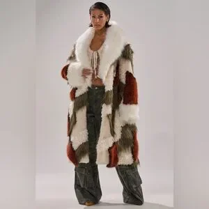 NWT Akira Patchwork Faux Fur Coat in Cream, Olive & Rust 1X /2X