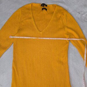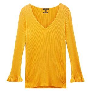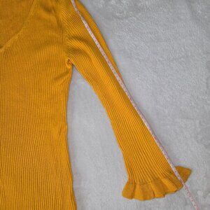 Massimo Dutti mustard yellow ribbed sweater top made out of mulberry silk and cotton, size M.