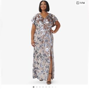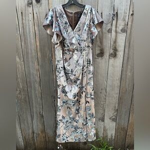 Adriana Foil Floral Print Velvet Long Gown in TAUPE size 8P